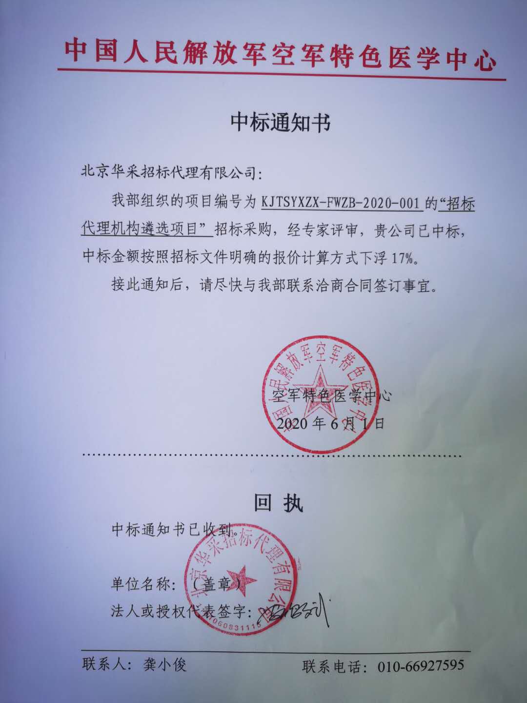 北京米兰在线(中国)招标代理有限公司成功入围中国人民解放军空军特色医学中心招标代理机构